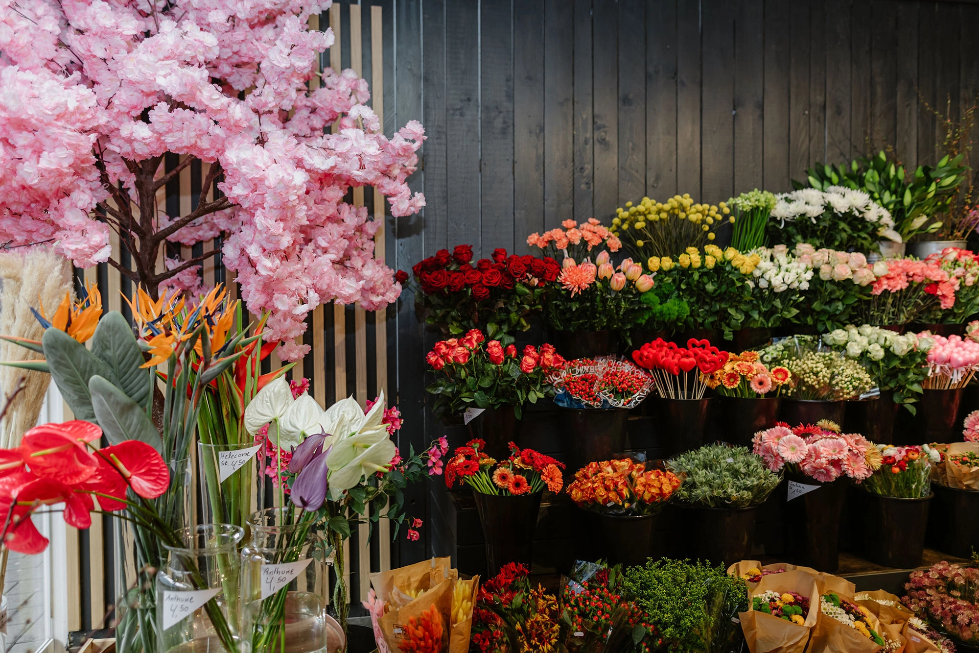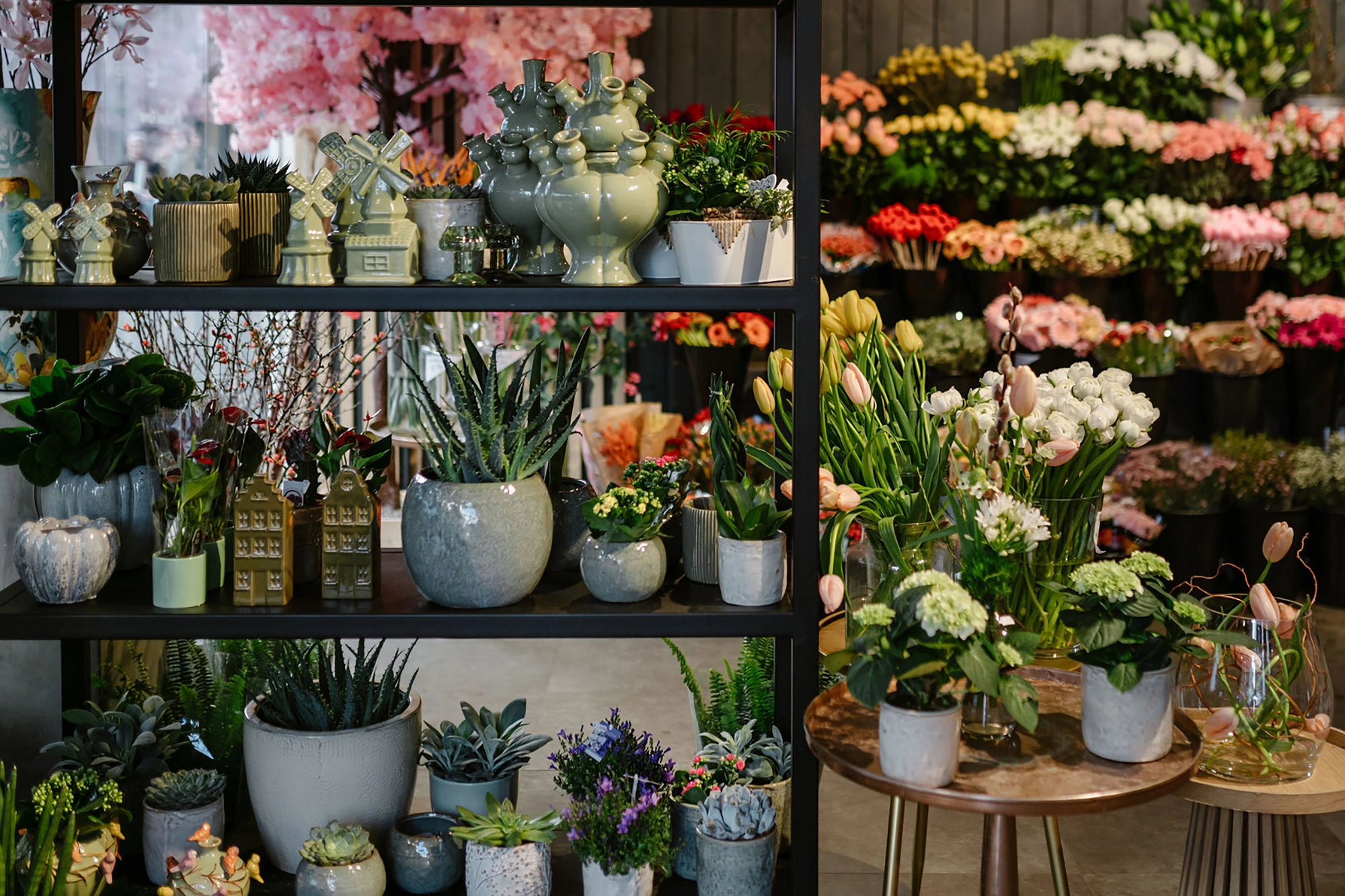 In all unseren Filialen finden Sie eine sorgfältig zusammengestellte Auswahl an Schnittblumen, Pflanzen, Vasen und Töpfen – alles, was Sie für das perfekte Blumengeschenk benötigen.